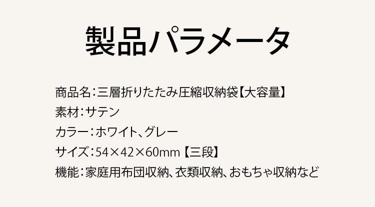 三層折りたたみ圧縮収納袋の大容量サイズ